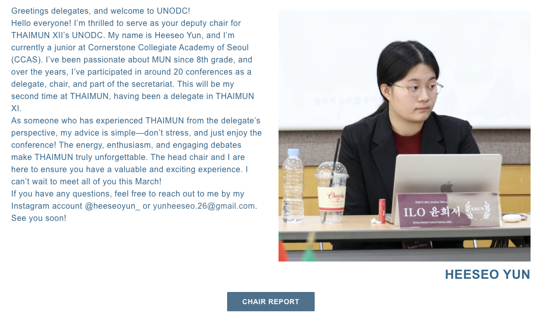 as the Secretary-General of the inaugural CCAS MUN Conference, managing all logistics, committee structure, and chair training.